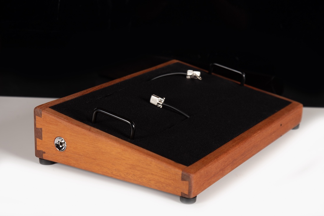 - 2 Soldered In/Out jacks with Mogami W2319 cable leads, right angle 1/4″ plugs for easy pedal, guitar and amp hookups, configuration!